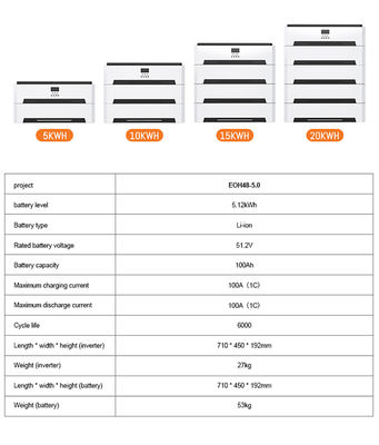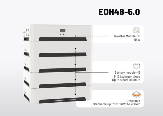 Este sistema cuenta con un inversor de onda senoidal pura de 5KW con un controlador de carga solar MPPT de alta eficiencia incorporado, combinado con paquetes de baterías LiFePO4 de super larga vida (5.12KWh por paquete).El sistema admite el apilamiento de hasta 4 paquetes de baterías para lograr una capacidad total de batería de 20KWh, proporcionando un suministro de energía estable para toda su casa.
