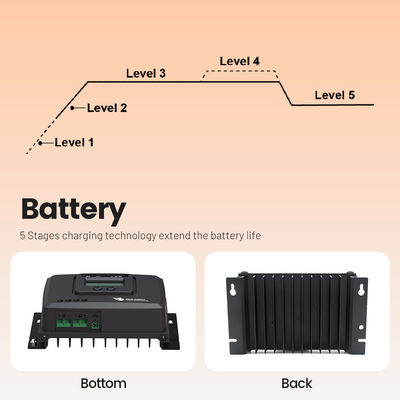 El proceso de carga del controlador de carga solar de RV se divide en cinco etapas, asegurando una carga óptima y eficiente de las baterías de su RV.Equalización y flotación, lo que permite una carga completa y completa de las baterías.