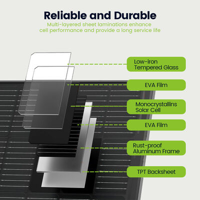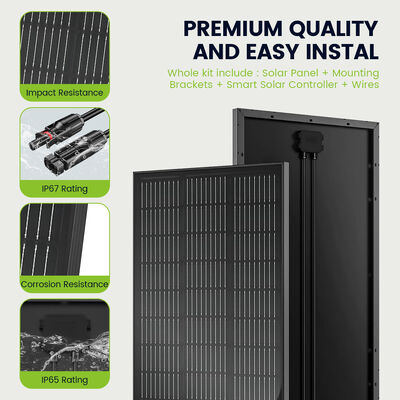 The 130W All Black Solar Panel delivering a full powerful 130W output under STC, this all‑black solar panel combines strong energy generation with a sleek, unified aesthetic. Its robust 35 mm full‑black frame ensures durability against outdoor elements and mechanical stress, while the seamless black-on-black design enhances visual appeal without compromising performance. Engineered to balance striking looks and reliable power, it is ideal for RVs, camping rooftops, and any setup where both efficiency and appearance matter.
